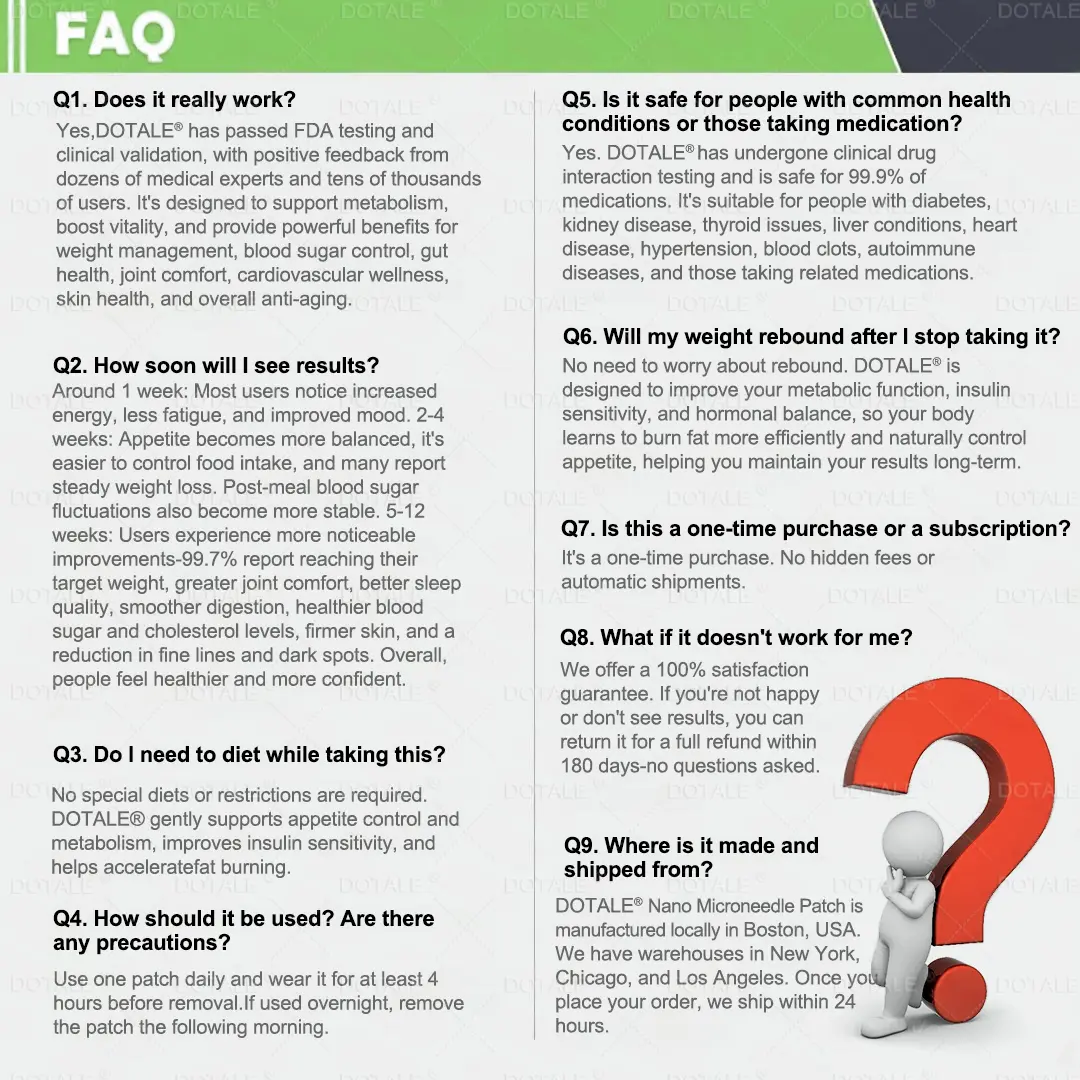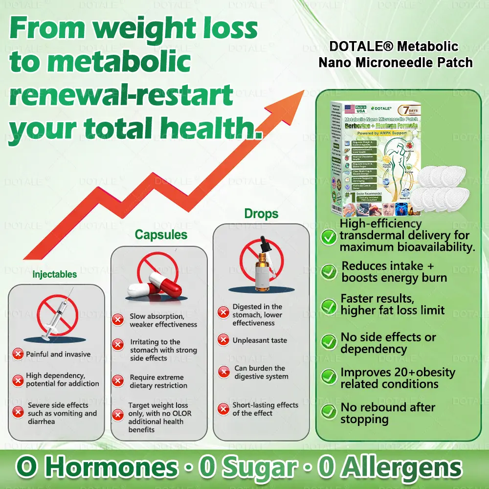 โ ย Easy Absorption:ย This formula uses an advanced nano microneedle patch delivery system. Combined with highly active ingredients such as berberine, it delivers key nutrients transdermally into the body, bypassing the digestive system and reducing gastrointestinal burden. The patch provides gentle, steady release for a more comfortable experience, making it especially suitable for individuals with sensitive digestion and those who prefer to avoid injectable weight-loss methods.